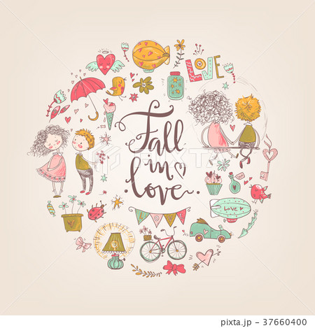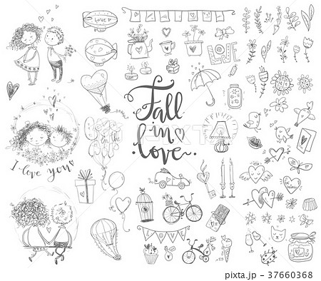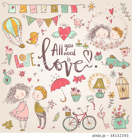 Cute Valentine's day vector set. Hand drawn romantic collection.