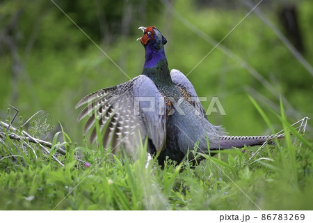 田んぼや畑などで見られる身近な野鳥で、日本の国鳥のキジ