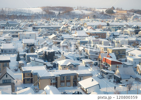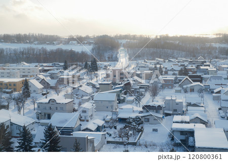 Winter town landscape in Biei, Hokkaido, Japan