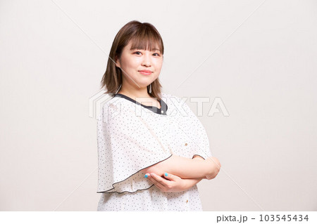 ぽっちゃり体型の若い女性 ビジネスカジュアル プラスサイズモデル