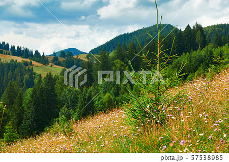 spruce forest on the grassy hillside