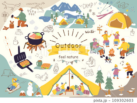 冬キャンプを楽しむ人達