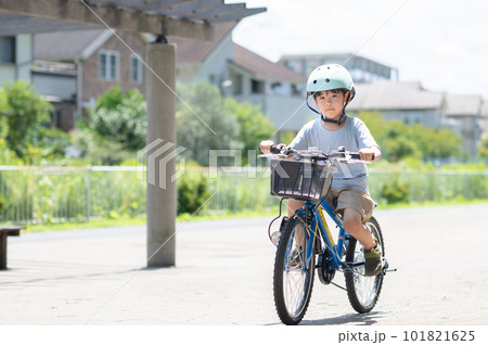 公園で自電車に乗る男の子