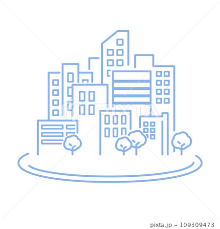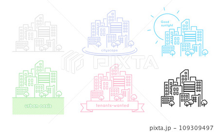 シンプルなビルの並ぶフレームのイラスト素材セット