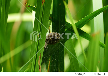 ジョロウグモ。幼体の集団生活。クモの子を散らす。団居(まどい)。