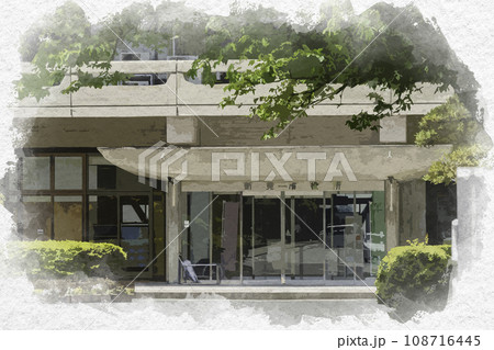 水彩画風 新見市役所 南庁舎 岡山県新見市