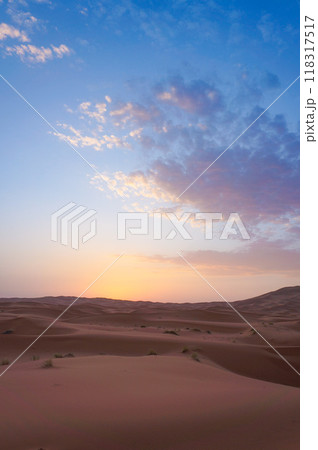 夜が明ける前の美しい砂漠の風景