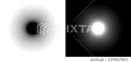 Art sun background. Design element template or logo, icon with lines. Black shape on a white background and the same white shape on the black side.
