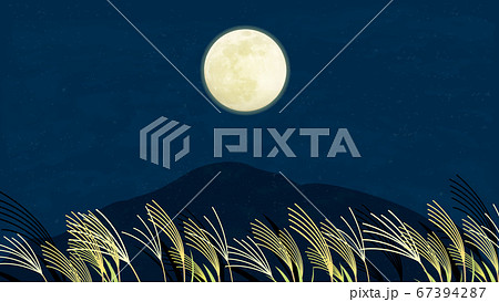 月見 満月とススキの風景イラスト