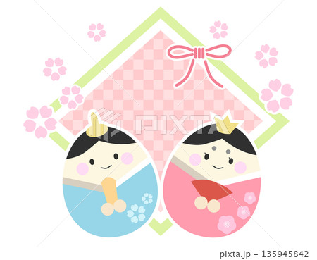 ひなまつり素材 お雛様とお内裏様のイラスト 菱形桜の模様のフレーム