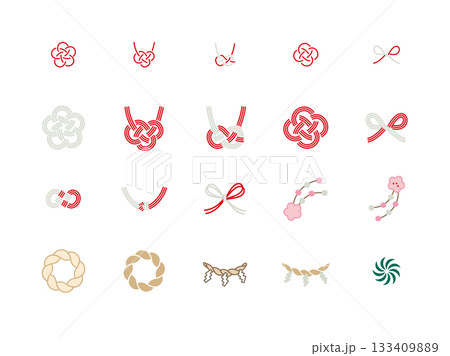 シンプル可愛い水引やしめ縄などのアイコンセット