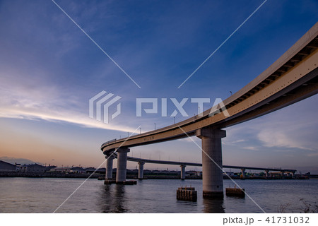 三重県 四日市港に新しくできた橋 いなばポートラインの夕景