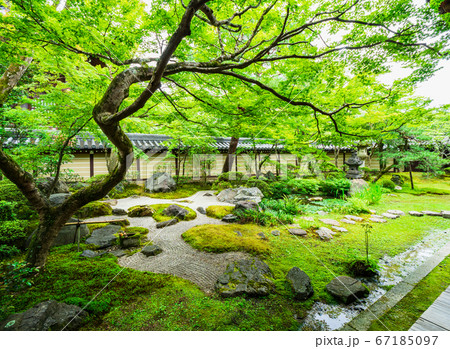 京都府に有る永観堂禅林寺の苔と落ち葉