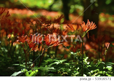 オレンジ色のユリの花 初夏の公園