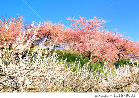 群馬県高崎市 満開の箕郷梅林と河津桜