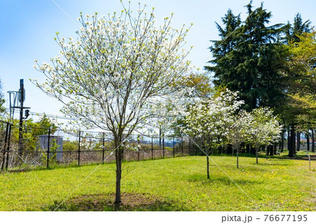 東京都瑞穂町 みずほエコパーク ハナミズキと青空