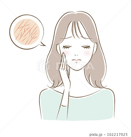 肌のキメが乾燥・肌トラブルに悩む若い女性のイラスト