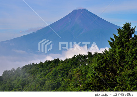 御坂山地の木無山より望む 雲わく夏富士山