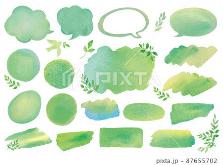 新緑の水彩風吹き出しと見出し背景素材セット