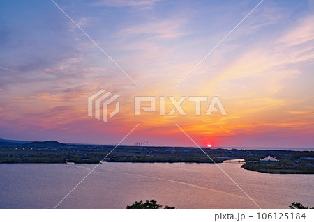 【出雲山展望台より東郷湖 (夕刻)】 鳥取県東伯郡湯梨浜町大字宮内