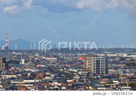 秋田ポートタワーセリオンから眺める風力発電設備群 秋田潟上ウインドファーム