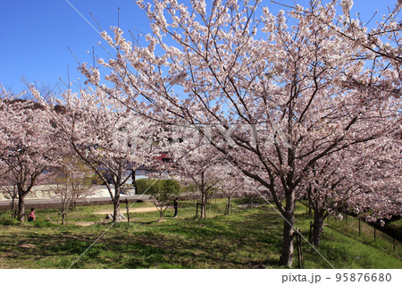 道の駅「筑前みなみの里」 水辺の広場 満開の桜が美しい春の景観