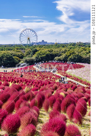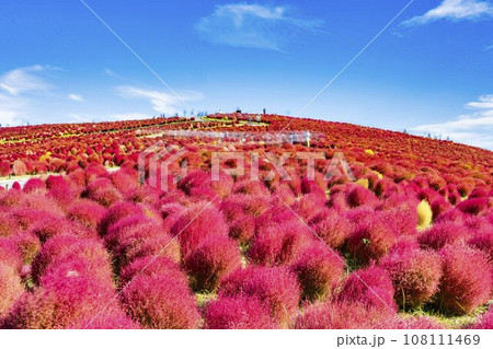秋の国営ひたち海浜公園 赤く紅葉したコキア 茨城県ひたちなか市