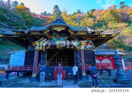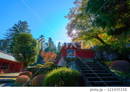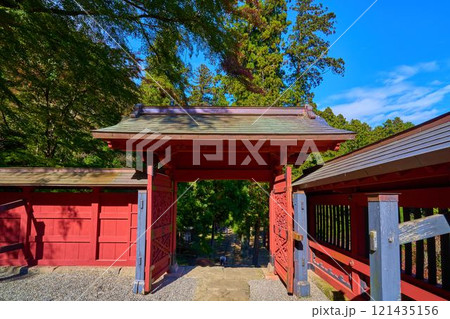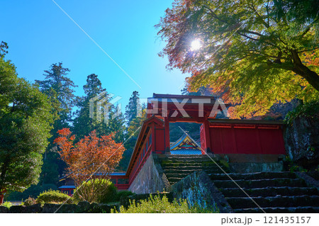 秋の群馬県富岡市の妙義神社の唐門(からもん)を拝殿側から見る