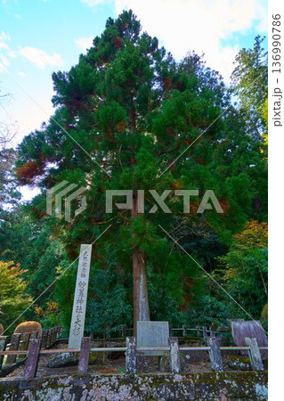 秋の群馬県富岡市の妙義神社の大杉(子孫)を見る