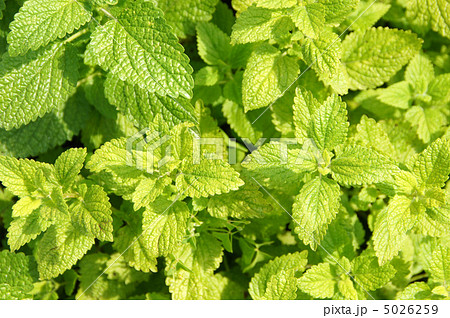 春に生い茂る鮮やかな緑色のミント