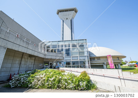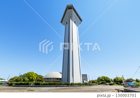 茨城県行方市 快晴の霞ヶ浦ふれあいランドの「虹の塔」