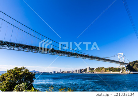 福岡県北九州市門司区の和布刈神社から見る関門海峡と関門橋