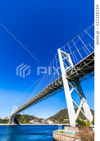 北九州市の関門海峡の関門橋と和布刈神社の鳥居