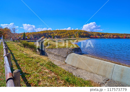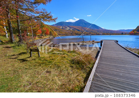 秋の長野県立科町の女神湖の南側湖畔にある女神湖センター