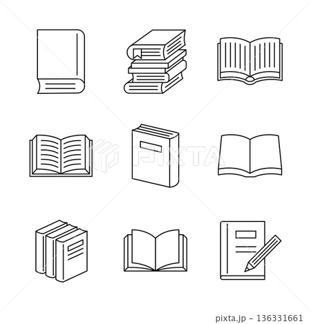 シンプルで洗練された本のラインアイコンセット