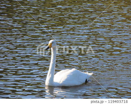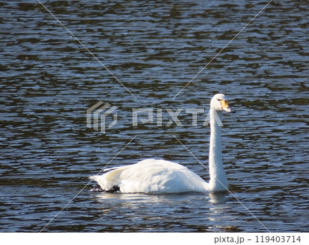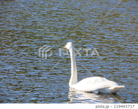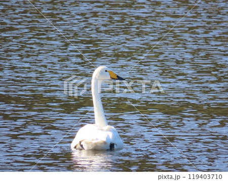 水面を泳ぐ白鳥 横向き 斜め横顔