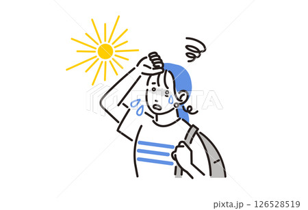 熱中症に悩む交通誘導員や作業員のアイコンのベクターイラスト素材/夏/熱中症/紫外線/セット