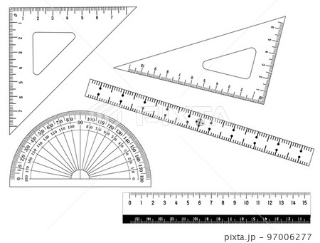 分度器 三角定規 物差しのイラスト 文具 文房具のシルエットセット