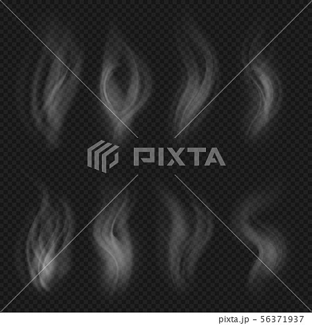 White transparent smoke collection. Hot steam from food isolated on checkered background vector set