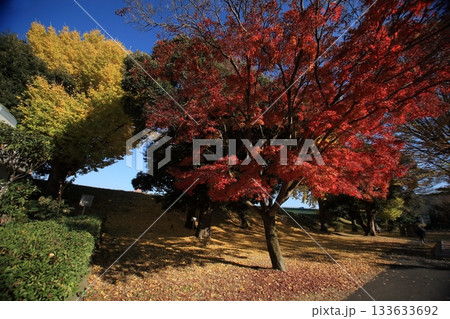 秋の公園の大きな木
