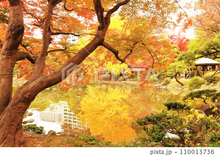 秋の色に染まる公園の木々