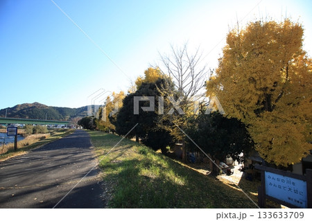 狩野川隣に黄色に染まる秋の公園