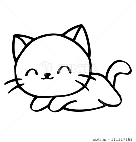 Drawing animal hand drawn cat illustration with fluffy fur texture and calm pet expression in simple black white sketch style