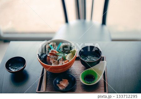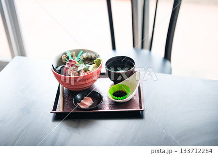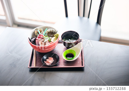 新鮮な海の幸が並ぶ海鮮丼の物撮り