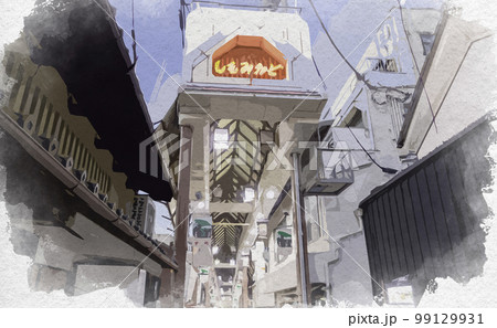 水彩画風 小西さくら通り商店街 奈良県奈良市
