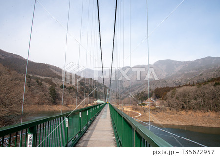 もみじ谷大吊橋 塩原ダム湖 春の景色