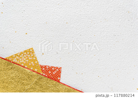 白と金銀のもみ和紙に金と赤の千代紙の和風背景