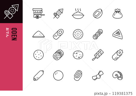 おでんのシンプルなラインアイコンセット