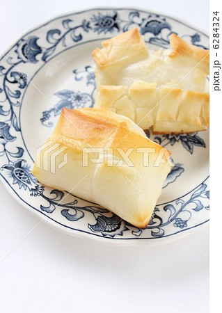 白背景に置かれた焼き餅のクローズアップの俯瞰