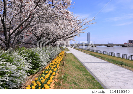 柳都新潟市信濃川やすらぎ堤緑地の桜